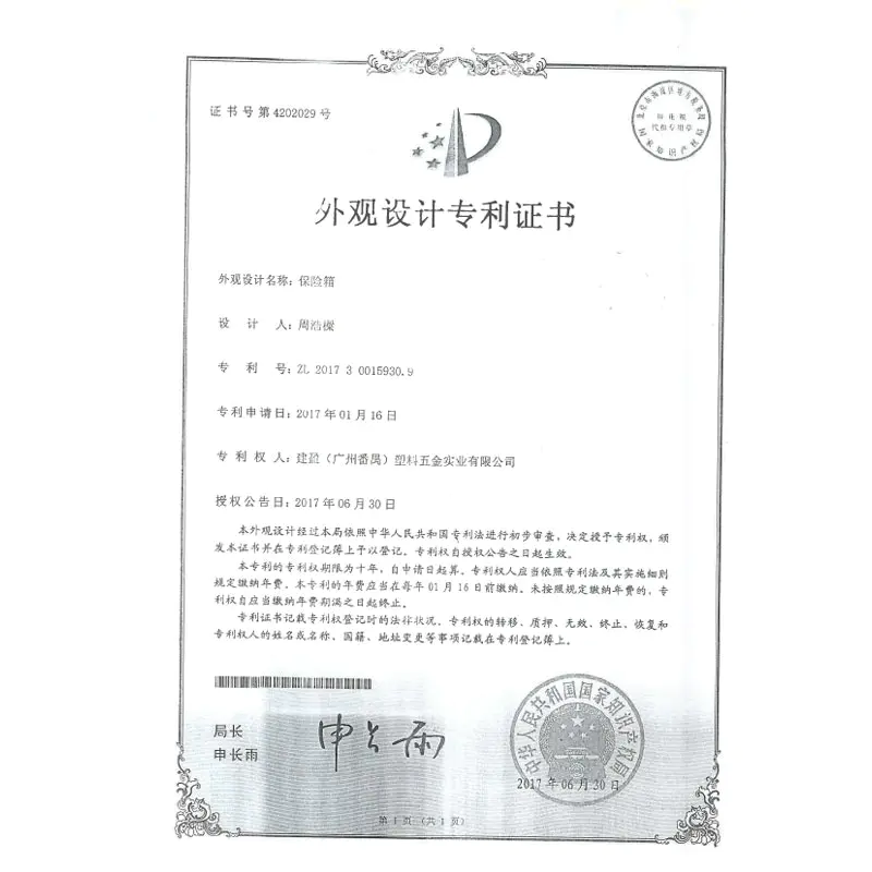 With strong R&D, Guarda holds multiple patents in the PRC, as well as overseas, ranging from invention patents to utility and design patents of all kind on our line of fireproof safe technology. Guarda is a designated High-Tech Enterprise in the PRC. Guarda manufactures to the highest standards and is an UL certified manufacturer. Our designs are aimed at providing consumers with practical and user friendly design that offers the desired protection.